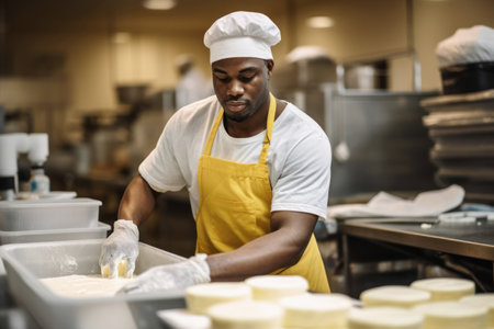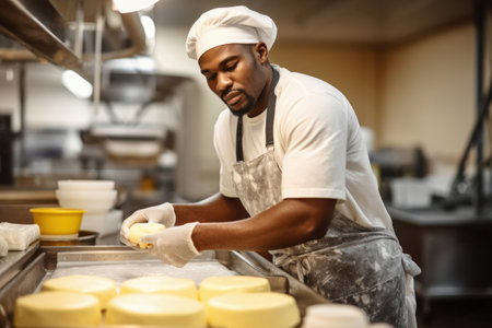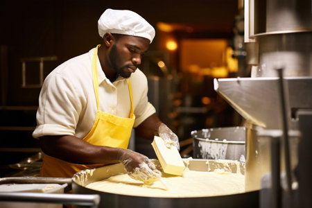 A cheese maker working hard to prepare his next creation