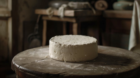 wheel of white cheese on the table generative ai