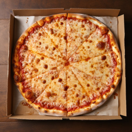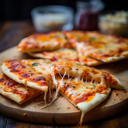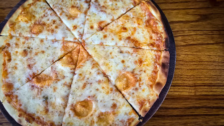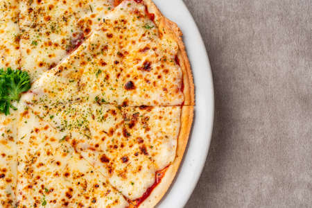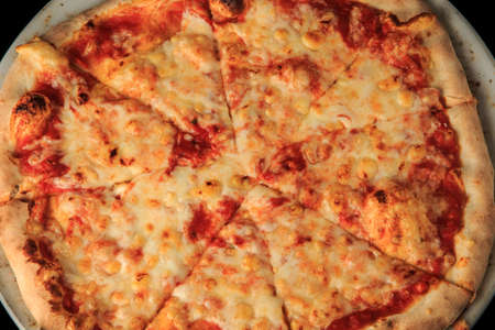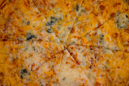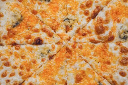 four cheese pizza cut into 8 parts - food background