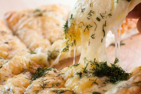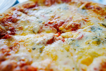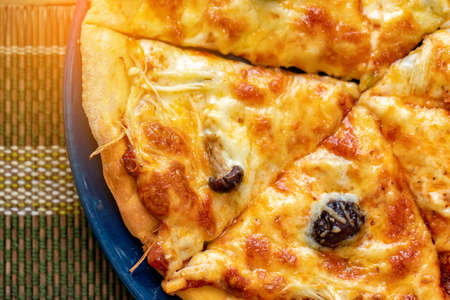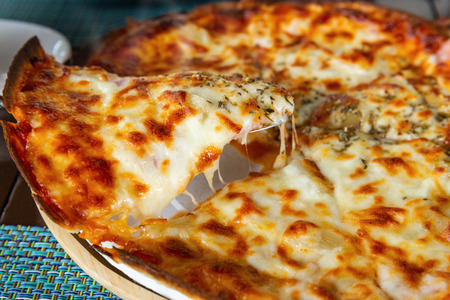 cheesy pizza close-up traditional