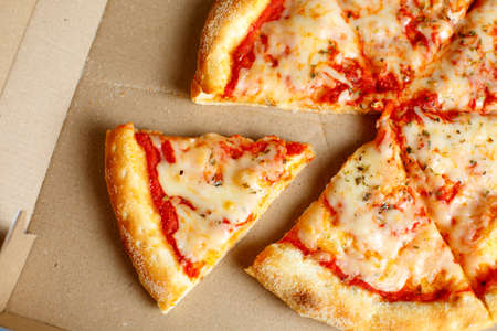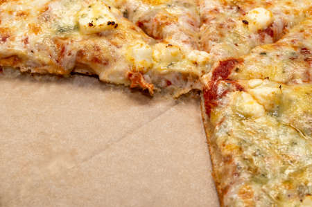 slices of italian pizza margherita close up.