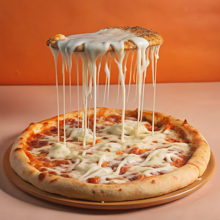 Pizza with mozzarella cheese on orange background. Italian food