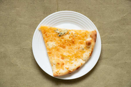 four cheese pizza, italian pizza. pizza stuffed with four varieties of cheese on a gray background