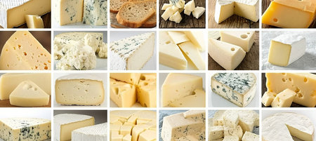 Assorted cheese product collage in contemporary style with various delightful varieties