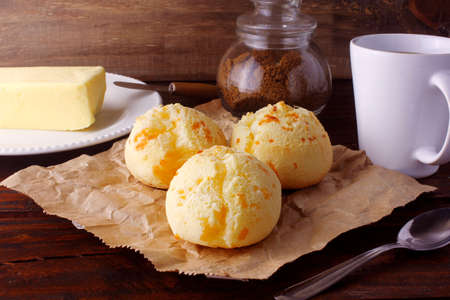Breakfast Brazilian snack, traditional cheese bread from Minas Gerais - pao de queijo