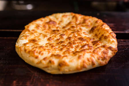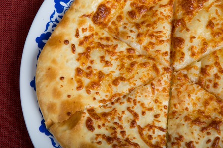 Georgian khachapuri freshly baked close-up view as background with nice crust