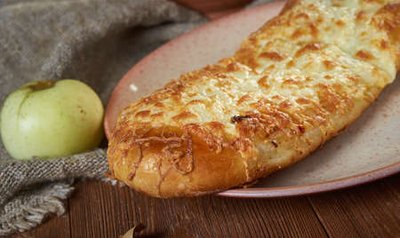 khachapuri (ghvezeli) in a half moon form for christmas day, Georgia.