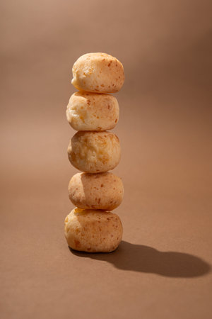 Brazilian cheese buns stacked on top of each other like a tower
