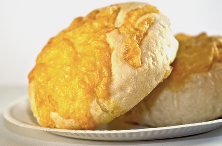 Small cheese bread buns on wooden board on table