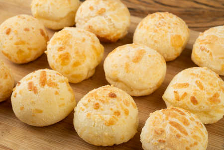 Typical brazilian cheese bun over a wooden board.