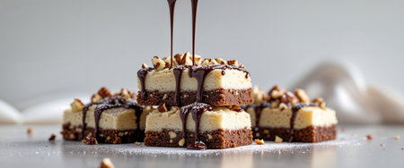AI Generated. Delicious Cream Cheese Brownies with Chocolate Drizzle and Nuts
