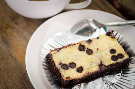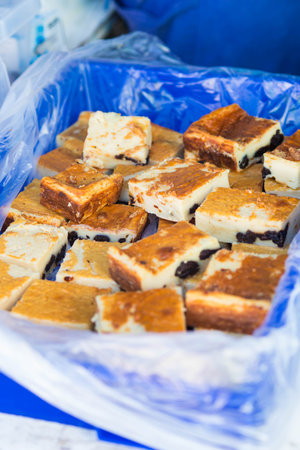 Chocolate brownie (brownie) is dessert a square, baked, chocolate dessert for sale in sweet dessert shop at Thai street food market
