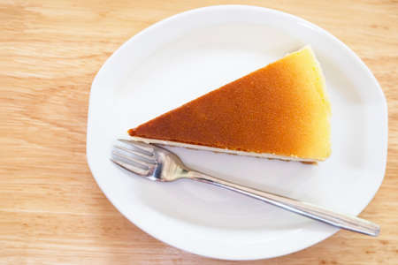 New York cheesecake on white wooden table - homemade cooking bakery concept