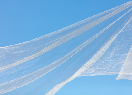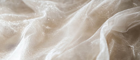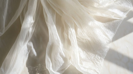 Ethereal flow of sheer fabric illuminated softly, creating delicate, airy appearance