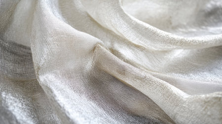 This image showcases a soft and shimmering light fabric drapery that features elegant textures and subtle color variations, perfect for fashion or home decor projects.
