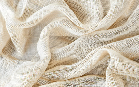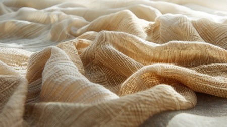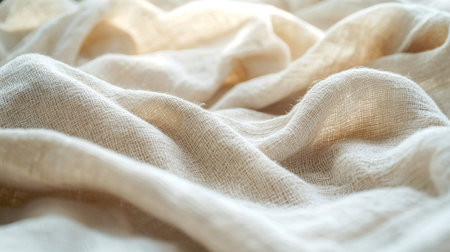 A beautifully detailed close-up of soft, wrinkled fabric in natural beige tones, showcasing its delicate texture and gentle folds, ideal for various creative projects.