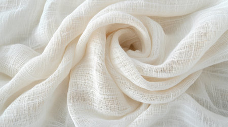 A soft, textured white fabric is gracefully arranged across a neutral surface, gently catching light.