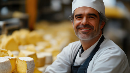 Portrait of a smiling cheese maker at work.