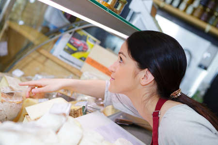 cheese sales assistant helping customer during shopping
