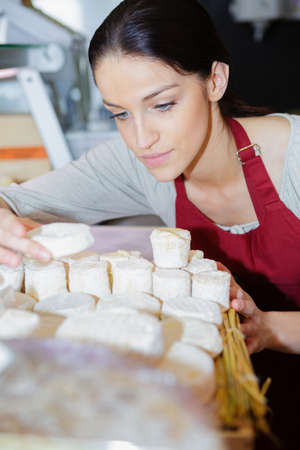 Goat cheese artisan in creamery