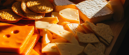 Cheese and crackers arranged on a wooden platter for a savory party snack experience