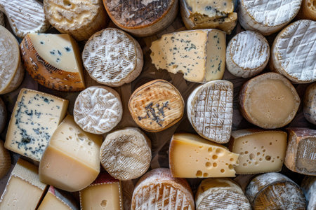 A vibrant display of various cheeses showcases unique textures and colors perfect for tasting.