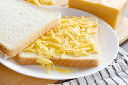 Sliced pieces of cheese on rustic wooden background, cheese sandwiches