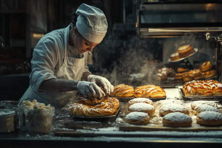 Pastry Chef at Work: Confectioner creating delicate pastries and cakes.