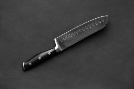 Kitchen knife on black background. Selective focus