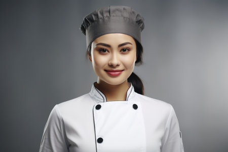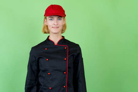Portrait of a beautiful girl in a chef's hat and uniform