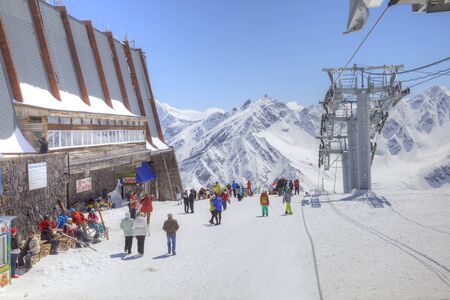 CAUCASUS, RUSSIA - May 01.2015: Station of Aerial lift on a mountain Elbrus. First level