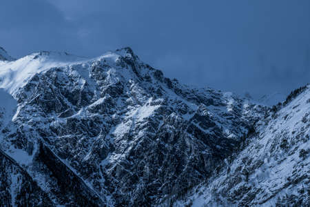Picturesque view of the snowy peaks of the North Caucasus of the Elbrus region in good weather. Russia.