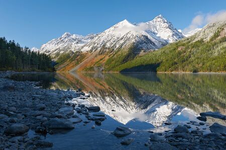 Altai Mountain. the second multi-million lake. View from below horizontally