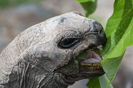Close up of a giant turtle in Praslin island, Seychelles