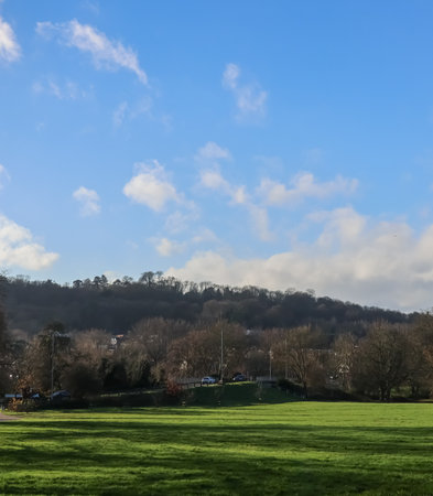 Bath, United Kingdom - October 13 2018: Georgian Terraced houses winding up a Hill on the outskirts of Bath, seen from North Parade Bridge