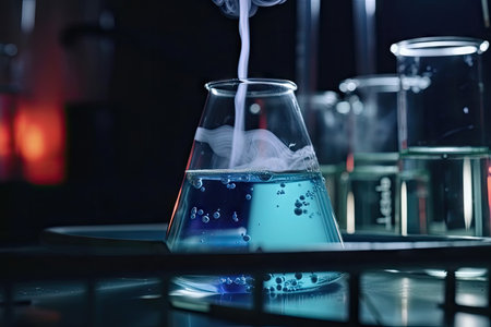 close-up of chemical reaction in laboratory setting, created with generative ai