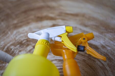 Closeup of Spray bottle nozzle - cleaning theme banner.