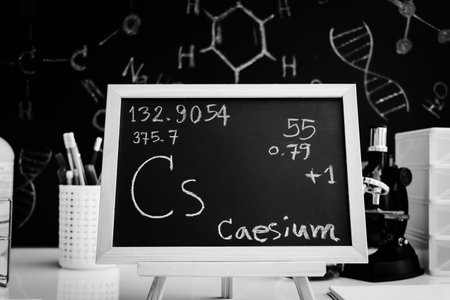 caesium and symbol structural formula chemical on the blackboard, Chemistry in the classroom