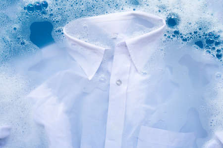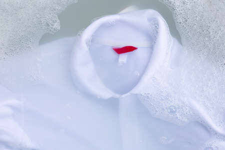 White shirt soak in powder detergent water dissolution, washing cloth. Laundry concept