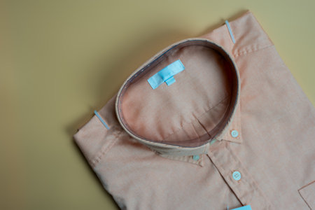 A neatly folded shirt exhibits a beautiful gradient color scheme, perfect for showcasing fashion and style in contemporary photography. The soft background adds elegance.