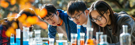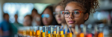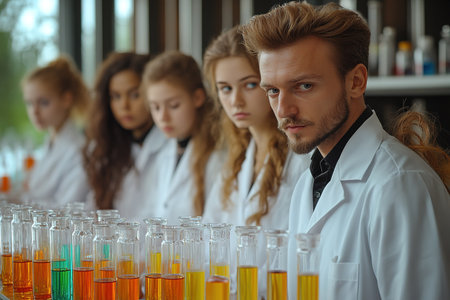 Focused Students in Science Lab with Test Tubes.