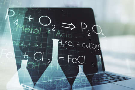 Creative chemistry concept on modern laptop background. Multiexposure