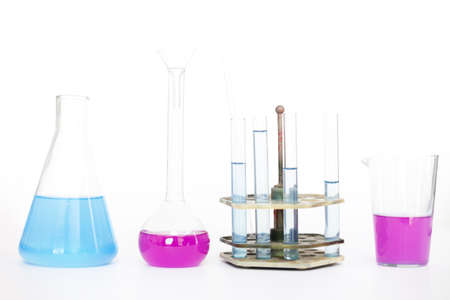 Chemical liquid in glass flasks and test tubes in a medical laboratory.