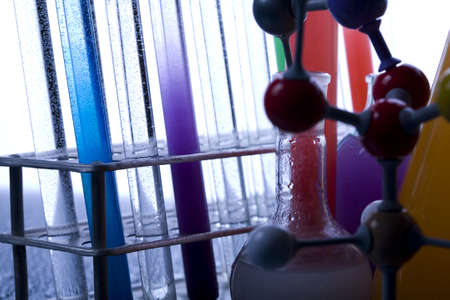Laboratory equipment and molecular model in a science lab during a research experiment