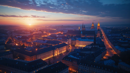 Aerial view of Poznan with The Imperial Castle at sunset, Poland