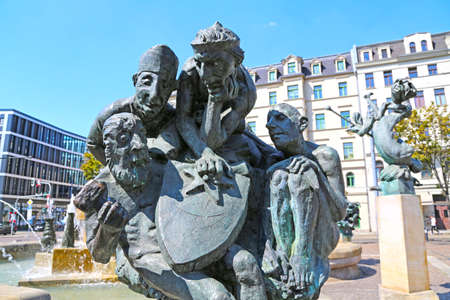 Halle / Saale, Germany-August 24, 2019: The Gobel fountain at the Hall market place