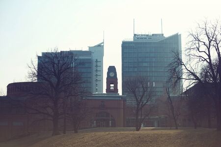 Morning cityscape view on the modern financial district near the Crown Prince bridge in Berlin city