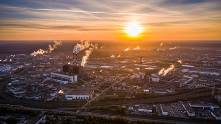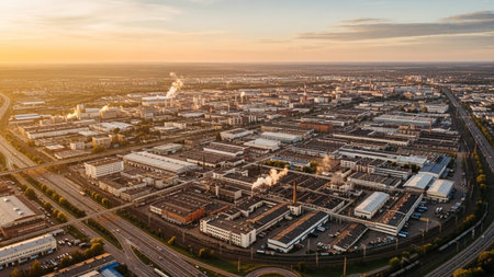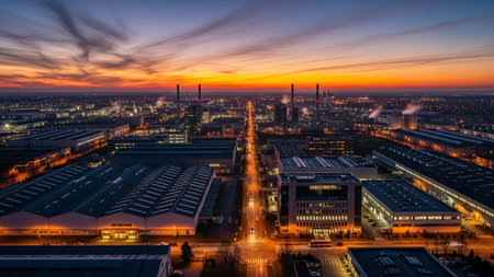 Aerial view of the city of Frankfurt am Main at sunset, Germany