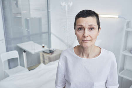 Happy, Positive Bald Woman in Hospital Room Close-Up. High quality photo