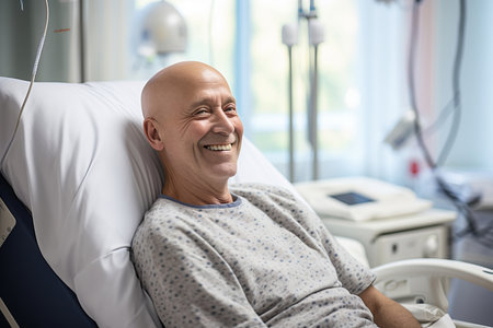 A heartwarming scene in a hospital room showing a smiling patient surrounded by supportive family, highlighting the strength of human connection during challenging times.
